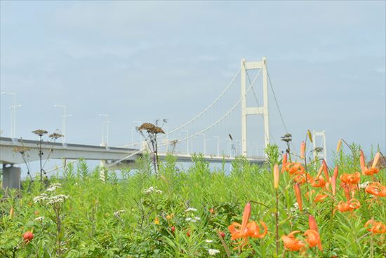 さて、撮りたかったというのは、白鳥大橋とユリのコラボでした(笑