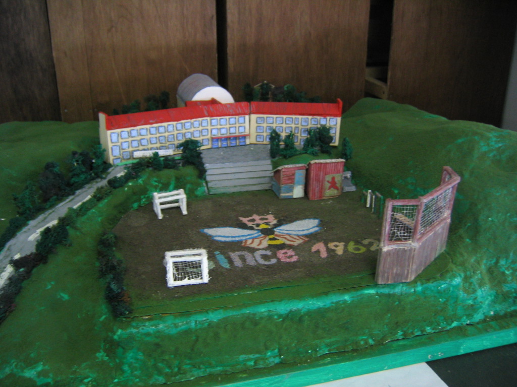 体育館の前に、現在の在校生が作った御中の模型が飾られています