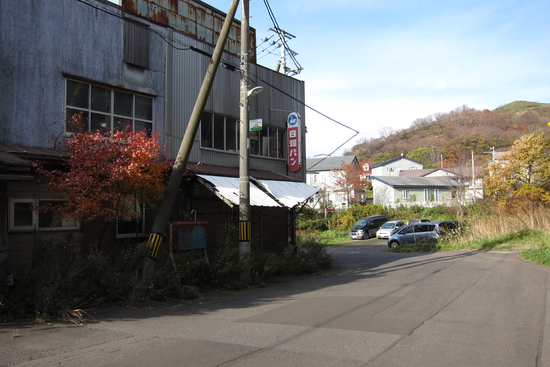 御前水町から御崎町へと・・・・のんびり&ふーふー言いながら歩いてきた散歩も終盤 帰りは、バス停がある道路を通って御前水町まで戻ることにします。 振り返ってパチリ。 ふと、お店横の色づいたもみじが目に入り あのもみじは、お店が閉まったあともずーっと季節を伝え続けてているんだな~と思うと なんだかしんみり(。_ _)シュン・・・