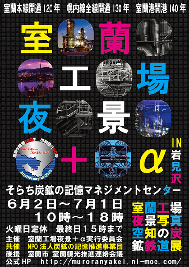 第1弾、第2弾と好評だった「室蘭工場夜景+α展」ですが、第3弾の開催が決まったそうです♪ 開催場所 そらち炭鉱の記憶マネジメントセンター 北海道岩見沢市1条西4丁目3 開催日時 平成24年6月2日(土)~7月1日(日)火曜日定休 開催時間 10時~18時 最終日は15時まで 開催内容 岩見沢‐室蘭間を結ぶ室蘭本線開通120年、幌内鉄道全線開通130年 室蘭港開港140年を記念して、石 […]
