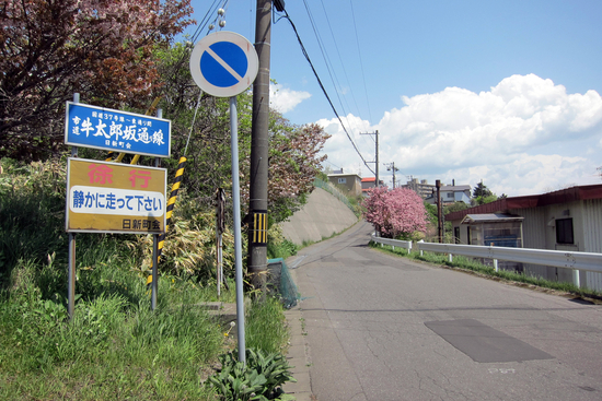 毎年撮りに行こうと思いながら中々タイミングの合わなかった牛太郎坂沿いに咲く八重桜。 今年は、お天気にも恵まれ満開時期に撮ることができました。 それにしても・・・・この看板、標識と電柱が隣にあってひじょーに撮りづらいです(汗