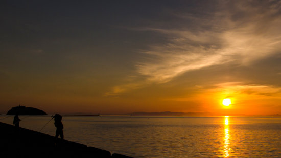 赤防に行くと、釣りをしている人達がいるので そんな釣り人のシルエットを入れて撮るのが好きだったりします(笑 が 何故、竿を下しているタイミングで撮らないのか_| ̄|○ そんな理由でお蔵入りした写真です。 遠くに見える山肌のシルエットもキレイだったこの日。 改めて室蘭の夕日はキレイだな~と思ったのでした(o^-^o)