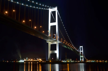 海面に工場の光などが写ってキレイですよね~♪