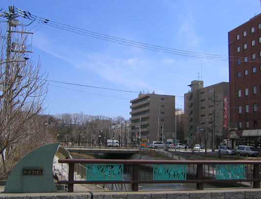 知利別川に架かる「曙橋」と「中の橋」の真ん中にある橋が「みどりばし」です。