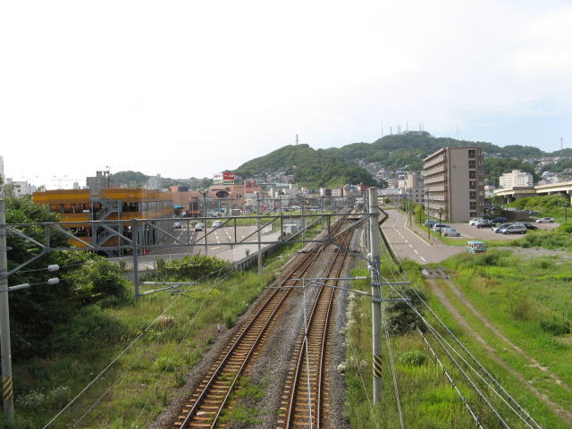 橋の上から線路側を望むと・・・この風景 よじ登るのはキケンなので金網の隙間にレンズを差込み撮ってみました 測量山も見えるし中々いい風景でしたよ(笑