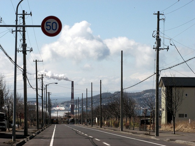 八丁平5丁目辺りのゆるやかな坂道の先に煙突が見える風景も好きなんです ちょっと電柱がうるさいんですけどね(笑 この辺から撮っています(地図はこちら)