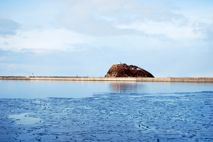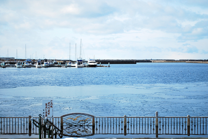 大黒島の方を見ると、やっぱり手前の方が氷っぽい・・・・