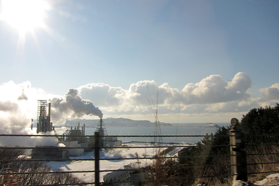 そう思い、早速今日チャレンジしてみましたがシャッターを押すのが遅かったようです かろうじて、大黒島が写っているので良しとしましょうか(笑 どこから撮ったの?と思った方はこちら ↑写真は逆光で撮ったのでわかりにくいですが、今日の室蘭はお天気がよく青空がキレイでした
