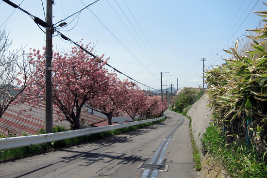 道路沿いにずーっと八重桜が咲いているんですよ~