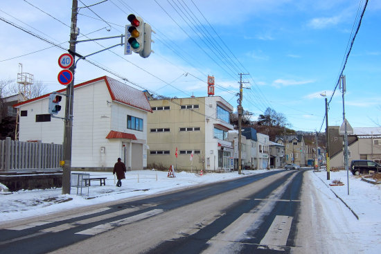 周りの風景は?というとこんな感じです 気温が少し高いせいか道路の雪もゆるんでいました(o^-^o)