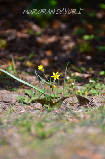 八幡さんの境内で見つけた黄花の甘菜(キバナノアマナ)