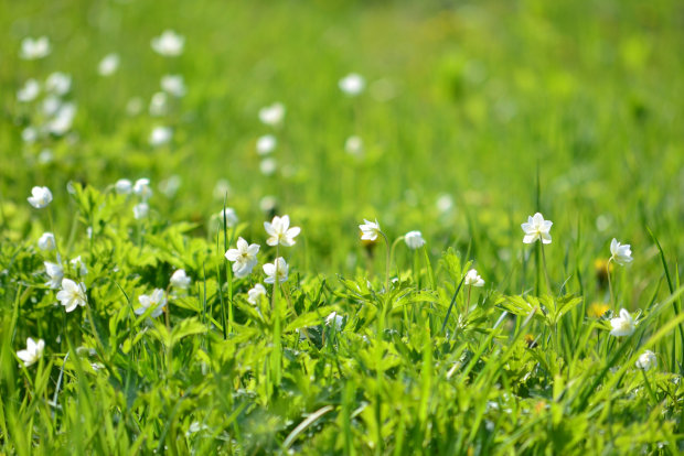 桜から目線を下に移すと小さなニリンソウが咲いています