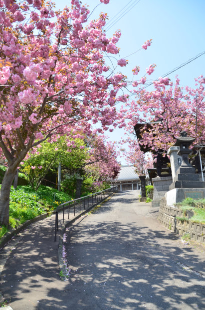 證誠寺の釣鐘堂近くに咲く桜と満冏寺へ行く通りの桜です。