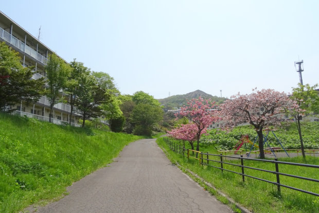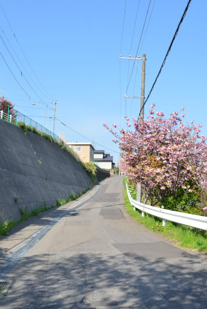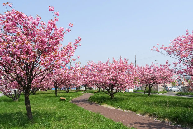 後編の1番目は東町郵便局隣にある遊歩道に咲く八重桜です