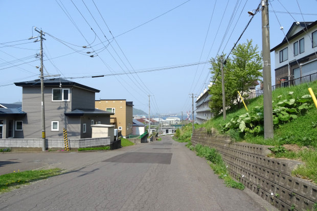 山手アパート1号棟が見えますが、この坂道も結構急なんですよね~