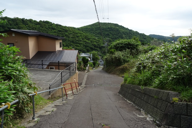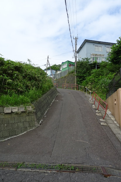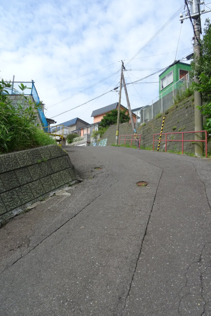 遠くに手すりが見えますが、坂道に手すりって更に急な坂ってことでしょうか(笑