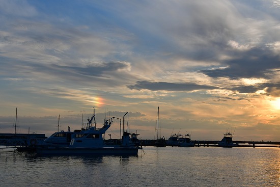 先月撮った日没前の風景です。 よおく見ると・・・太陽の暈のところに虹が見えるでしょうか(笑 この虹を見て「なんかいいことあるかもー♪」と思った私は単純です( ̄▽ ̄)