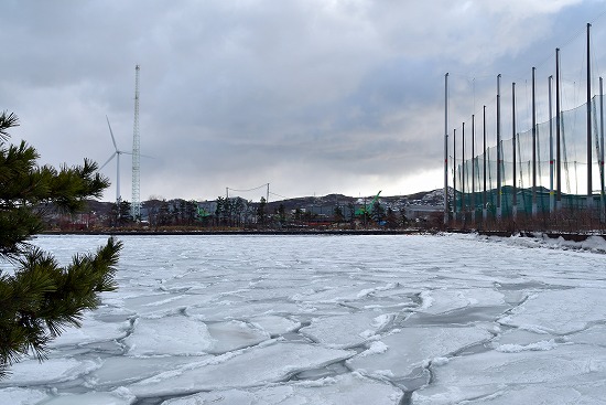 連日寒さが続いているので、まだハスの葉氷が見られるだろうと思い いそいそと中央埠頭へ。