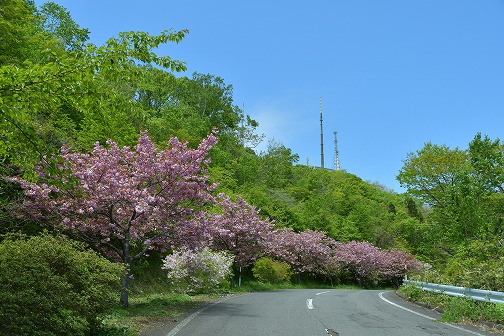 道路沿いには八重桜が咲いていました。