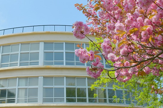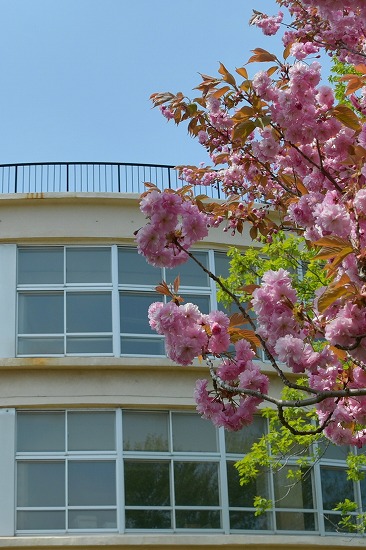 旧絵鞆小学校の敷地内で遅咲きの八重桜が咲いたと見たので早速足を運んできました