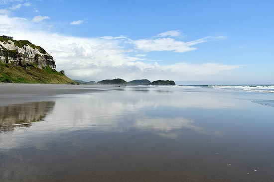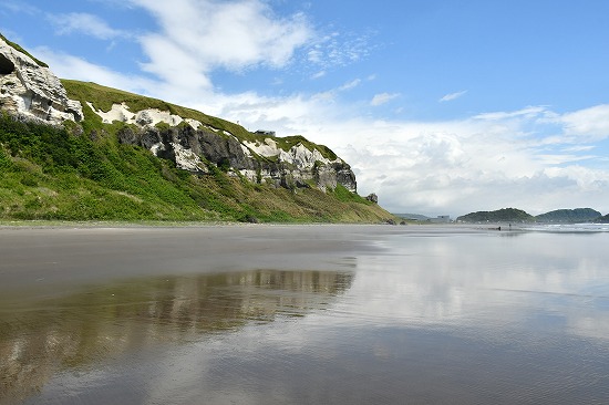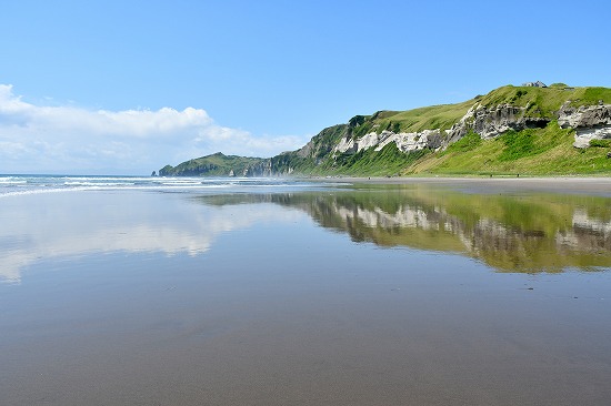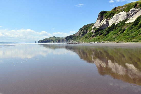 イタンキ浜の鏡面の風景は、何度か目にしているものの