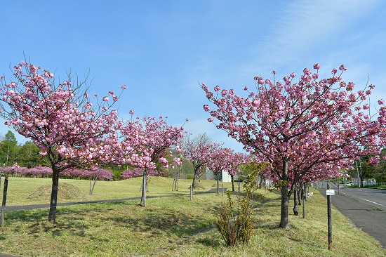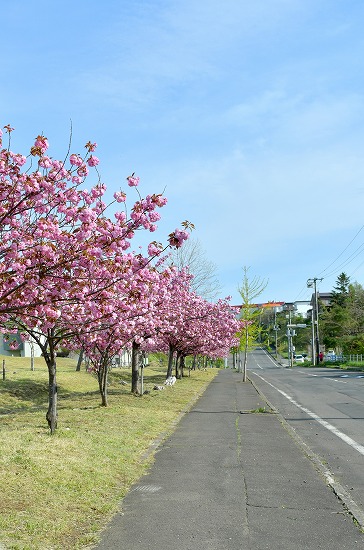 八重桜って青空の下で撮るとピンク色が際立つような気がします