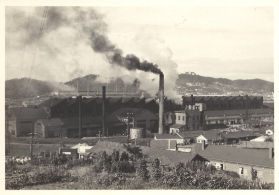 *日鋼の工場はそのまま、背後に見えるのは測量山です