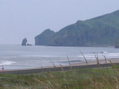 イタンキ浜にはたくさんの海水浴客が来ていました。