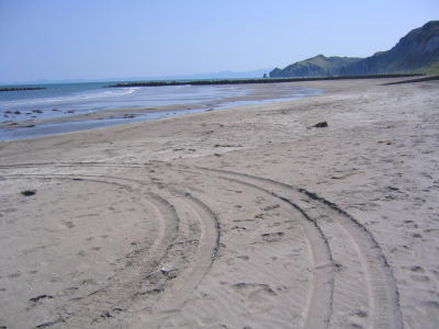 でも、砂場を歩いているうちに車のタイヤの跡を発見!