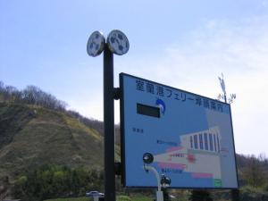 埠頭案内看板の上にサッカーボールをかたどった時計があるのです