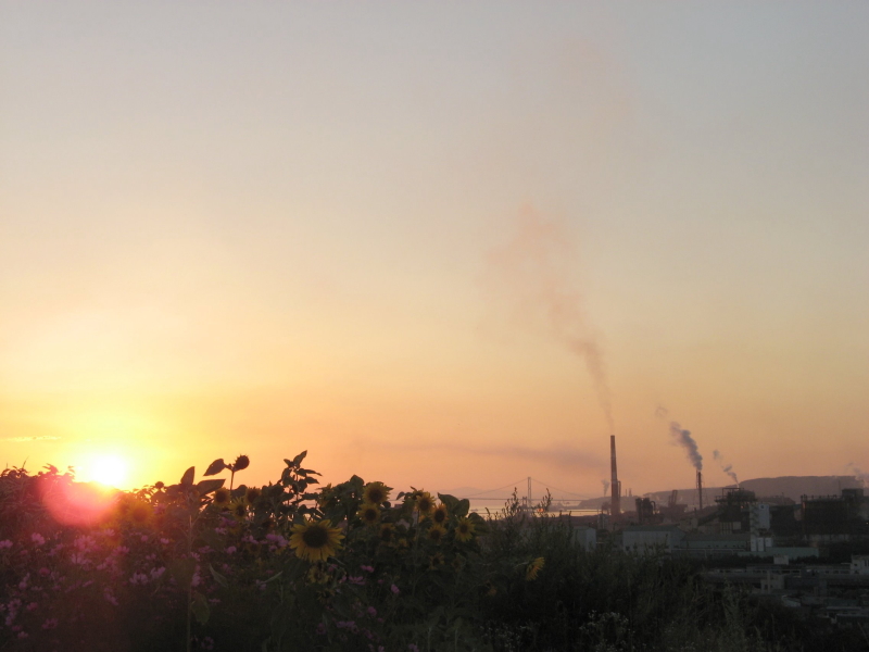 最近、仕事帰りに夕焼けを見れるようになりました ひまわりとコスモスが一緒に咲くこの時期 室蘭の夏もそろそろ終わりに近づいています。