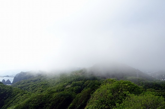 霧が流れてくるのが見えたので、慌てて地球岬に車を走らせ展望台へダッシュ!