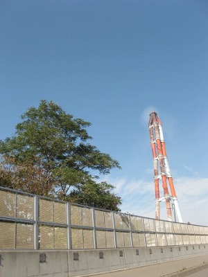 ふと見上げると集合煙突が大きく見えたのでパチリ。