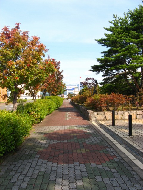 この写真は入江運動公園で撮ったものですが、道路に絵が書いてありますよね