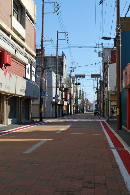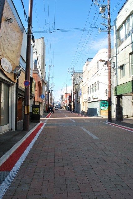 冬の間、ずーっと工事をしていた アーケードの道路整備が終わったようなので写真に収めてきました。 赤いラインが印象的?(笑