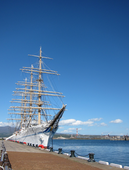 縦バージョンです。 もっと手前で撮りたかったけど柵から入れず(。_ _)シュン・・・。 それにしても今日の室蘭はいいお天気でした♪ 以前の海王丸の記事はこちら