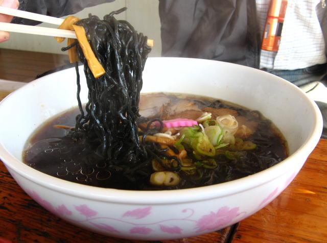 メンバーの方が竹炭ラーメンを少しおすそ分けしてくれました(笑