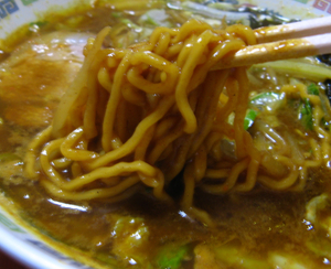 太めでちぢれのある麺がスープとからんで美味しいのです