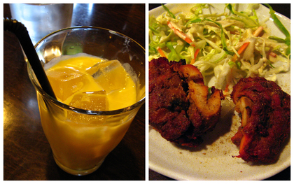 プレーンナン、バラクチキン、チキンティッカ、ホウレン草サラダ、マンゴーラッシー