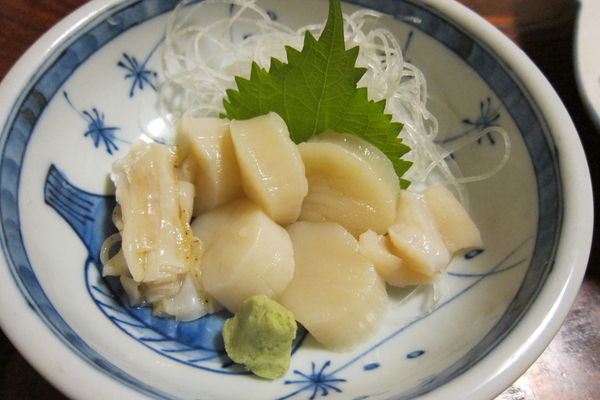 ホタテのお刺身。ホタテも好き♪(好き嫌いなしなので、何でも好きなのです(汗)