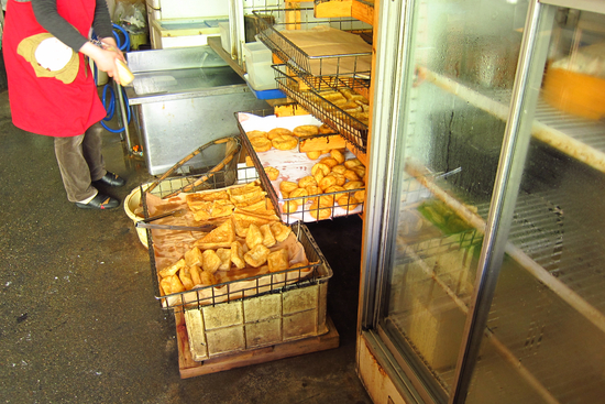 豆腐を買ったあと、揚げのいい匂いにつられて三角揚げもお買い上げしました